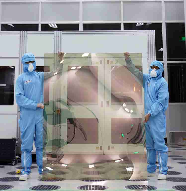 至成国际昆山厂第六代 LTPS (低温多晶硅) 生产的玻璃基板尺寸为 1500x1850 mm (毫米)