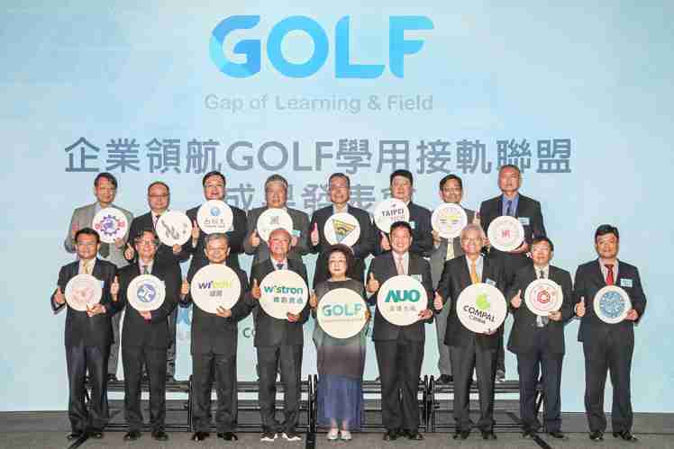 GOLF学用接轨联盟集结企业和学校的力量,,打造「学用合一、、产学接轨」的创新合作平台 (前排左起:淡江大学副校长何启东、、、元智大学校长林启瑞、、、、纬育执行长许延岳、、、、纬创总经理暨执行长黄柏漙、、教育部政务次长范巽绿、、、至成国际董事长暨执行长彭双浪、、、、仁宝总经理暨执行长翁宗斌、、大同大学校长何明果、、圣约翰科大校长艾和昌;后排左起:明新科大校长林启瑞、、、、龙华科大校长葛自祥、、、台湾科大校长廖庆荣、、、中兴大学副校长郑政峯、、中央大学校长周景扬、、台北科大副校长任贻均、、中华科大副校长石大明、、、、明志科大校长刘祖华)